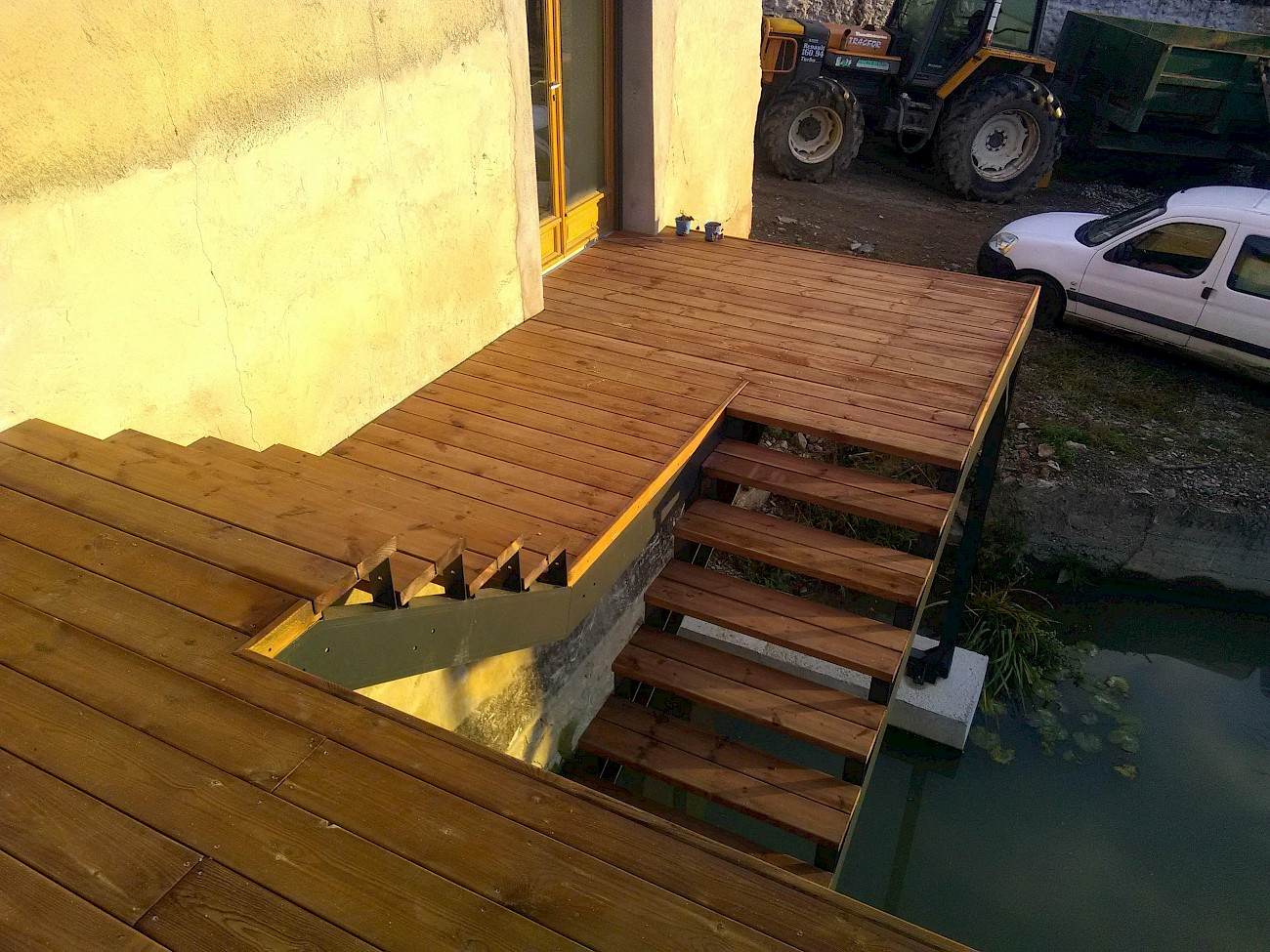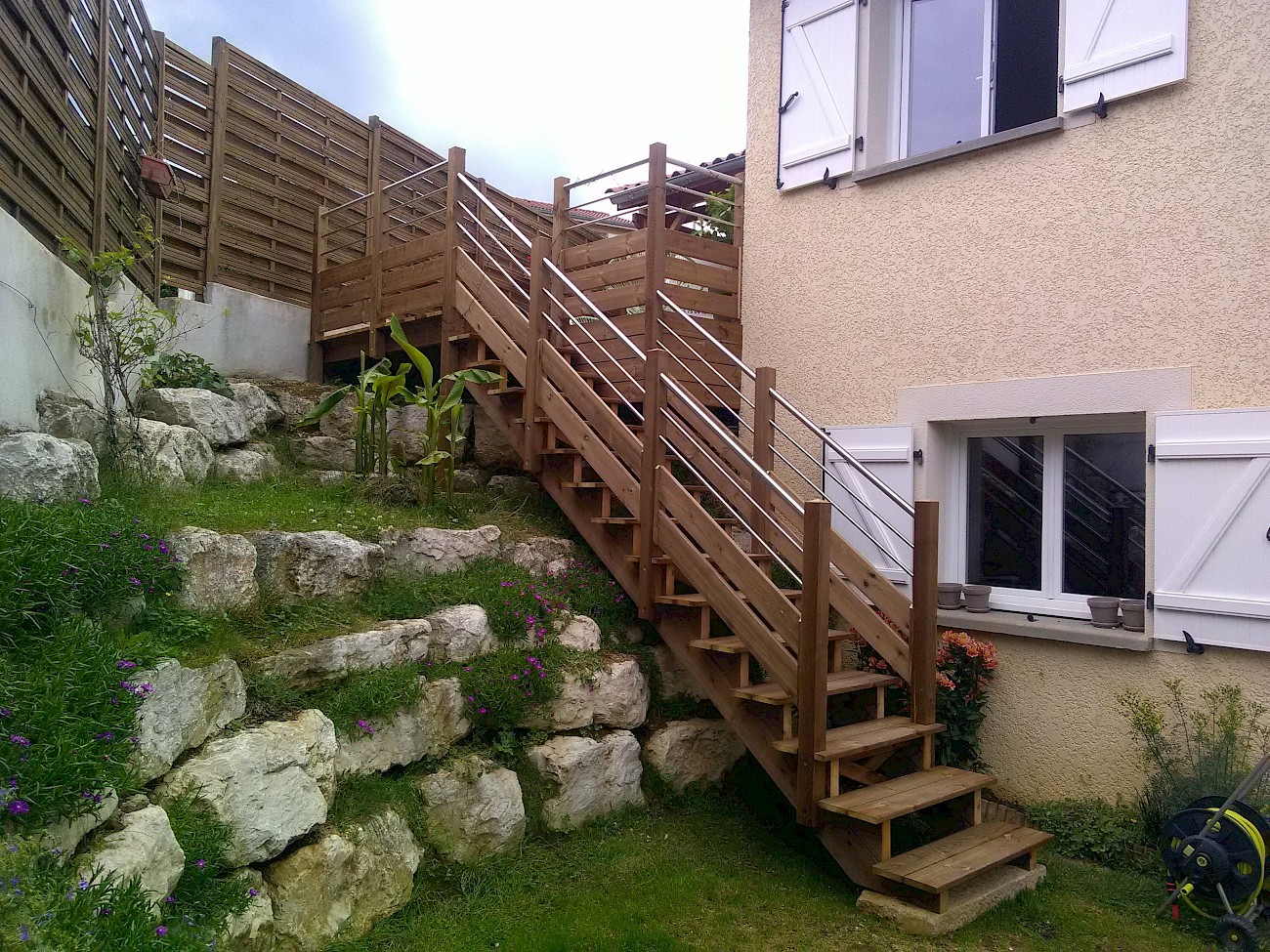 terrasse en pin classe 4 avec un escalier sur mesure